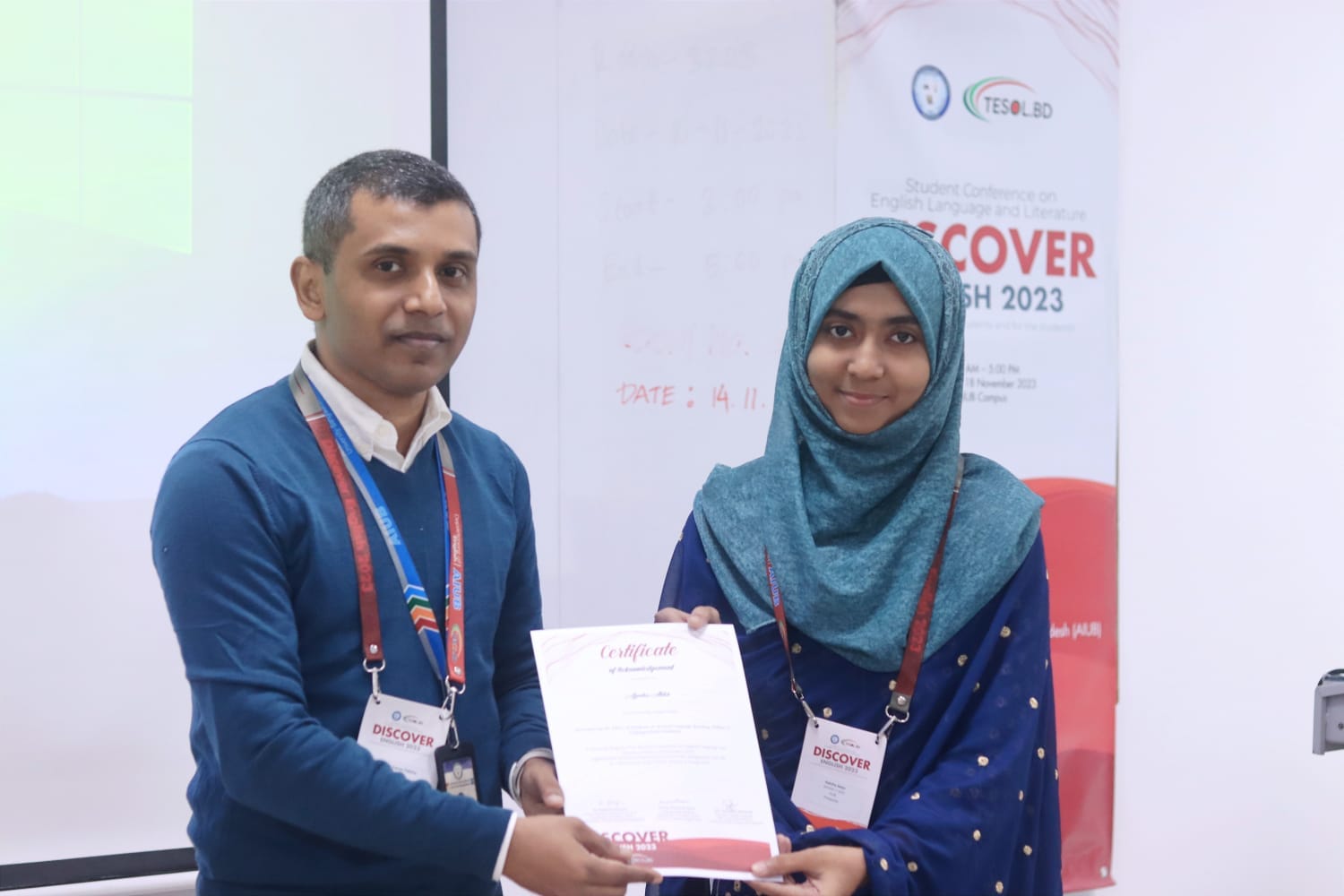 We are incredibly proud to announce that Ayesha Akter, a final-year student of the Department of English, has received a special recognition award at the "Discover English 2023: Student Conference on English Language and Literature." Ayesha’s outstanding research paper, titled "Investigating the Effect of Dyslexia on Second Language Reading Ability of Undergraduate Students," was supervised by the esteemed Dr. Serajum Munira, Associate Professor of the Department of English, Green University of Bangladesh.