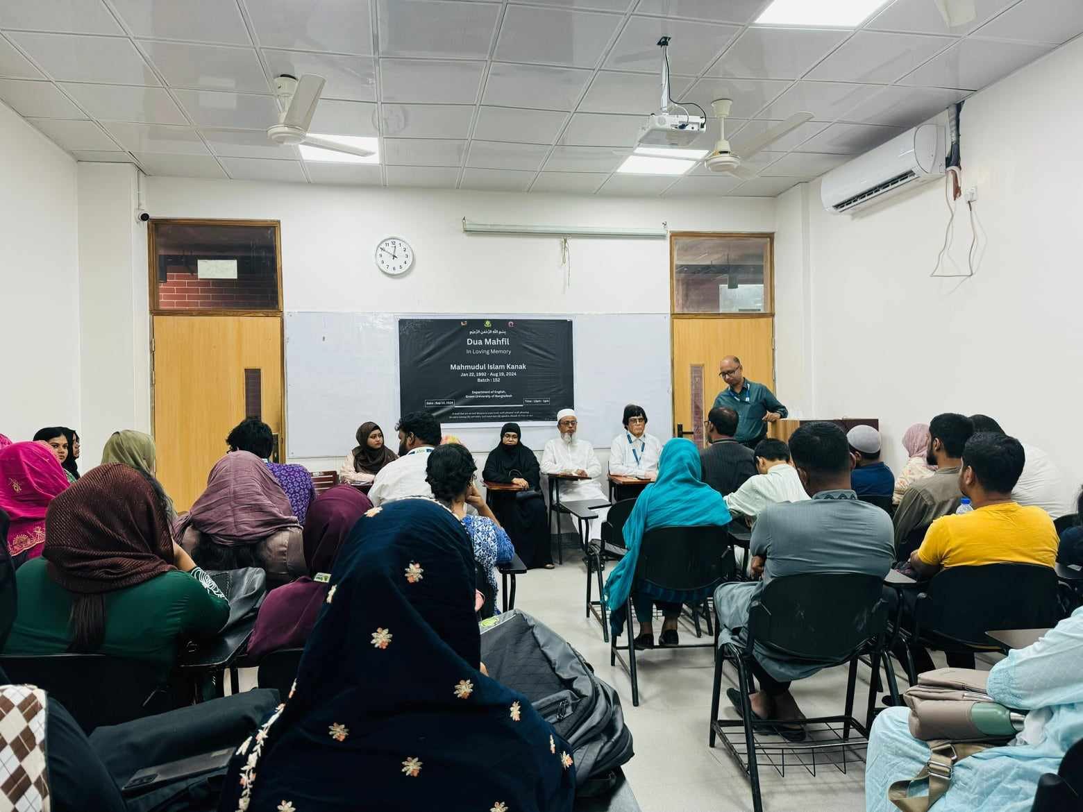 The Department of English, Green University of Bangladesh, is deeply saddened to share the untimely passing of one of our beloved students, Mahmudul Islam Kanak. In his memory, the Department of English, in collaboration with the Green University English Club (GUEC), organized a mourning meeting yesterday.