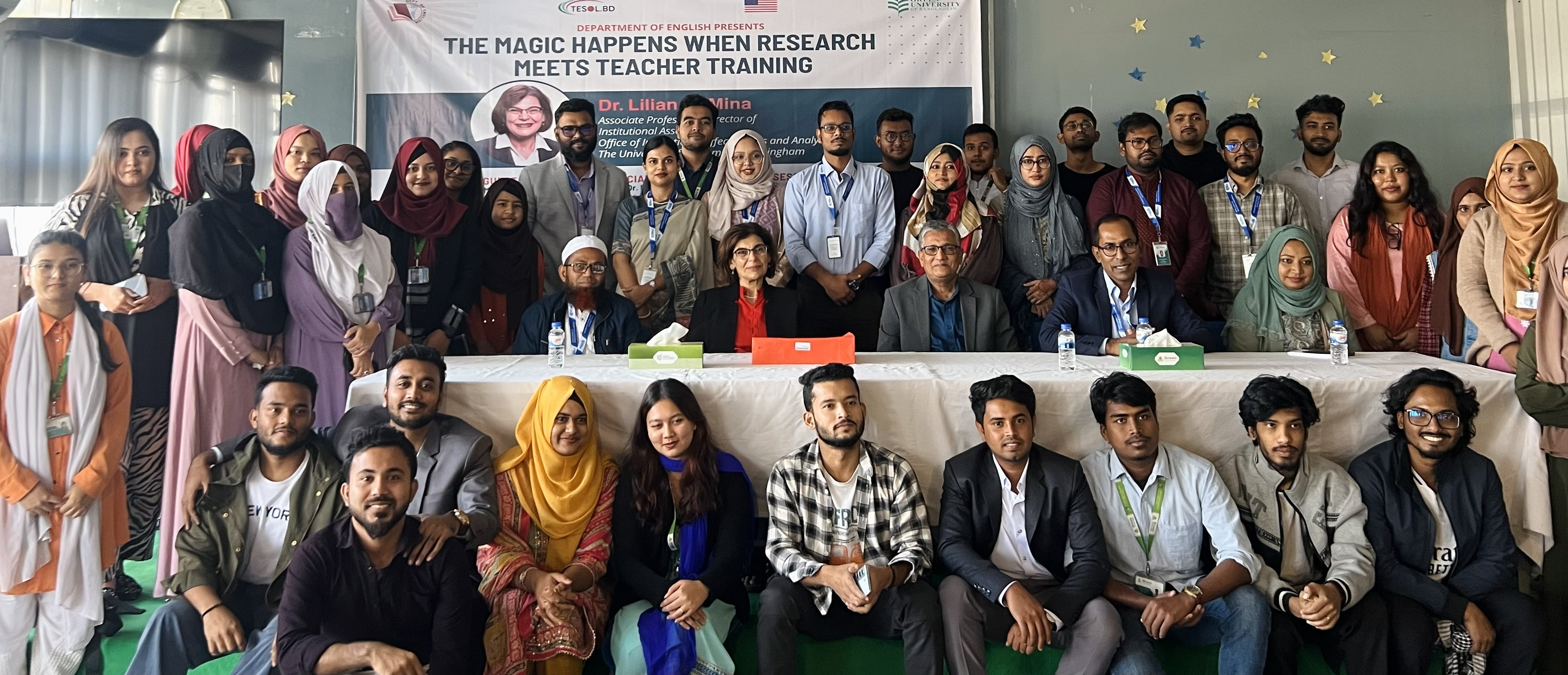 Department of English organized an academic session titled “The Magic Happens When Research Meets Teacher Training” on Monday, December 15, 2025, at 11:00 AM. We were honored to host the distinguished guest speaker, Dr. Lilian W. Mina, Associate Professor and Director of Institutional Assessment at the Office of Institutional Effectiveness and Analysis, The University of Alabama at Birmingham.